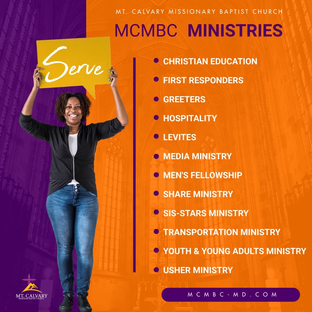 We encourage you to take advantage of all that Mt. Calvary has to offer, from the bible-based teachings and dynamic events, to the opportunities to use your gifts and talents to serve God and others.